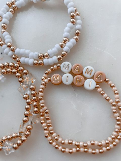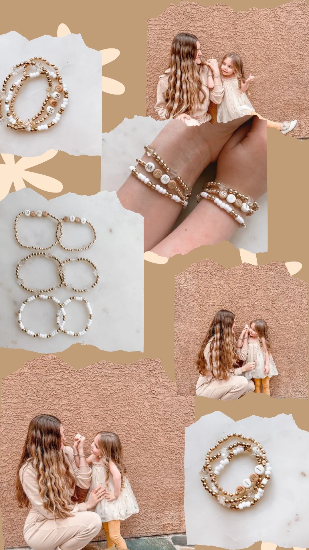 I hope you all love these new Mama and Mini bracelets Rachel and I designed together! My favorite colors recently have been gold and neutrals so we created this collection of bracelets in just those colors that will also go with anything you’re wearing! I’m am so excited about this launch and sharing these with all mamas and your minis! You’re all going to absolutely love the colors and quality of these bracelets like my daughter and I do! Thank you all for supporting this collab and I can’t wait to see you and your mini wearing these gorgeous bracelets!