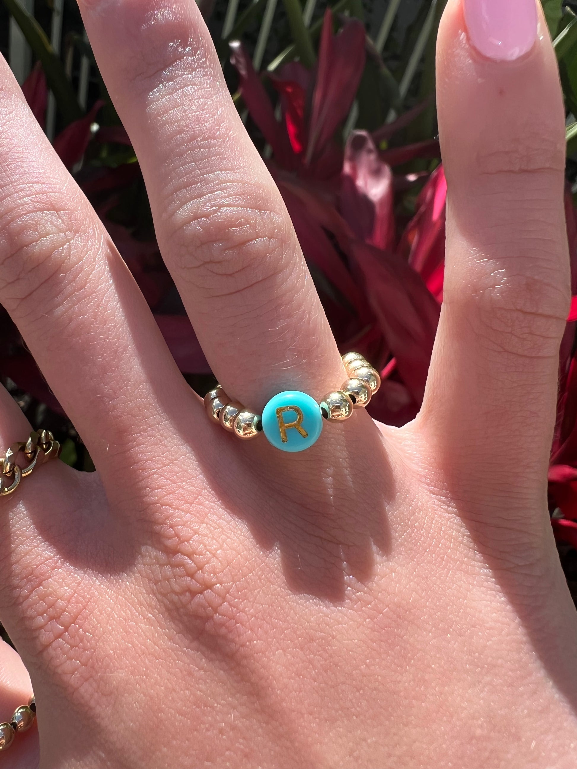 Make a statement with our 4mm gold Initial Rings! Each piece features a dainty 14k gold-filled bead, giving you the bling you need to feel luxurious and empowered. Plus, it's personalized with a cute colored bead and gold letter, making it one ring that's *all about you*. Get this signature accessory for the ultimate personalized style: the cutest beaded ring for all your special occasions!