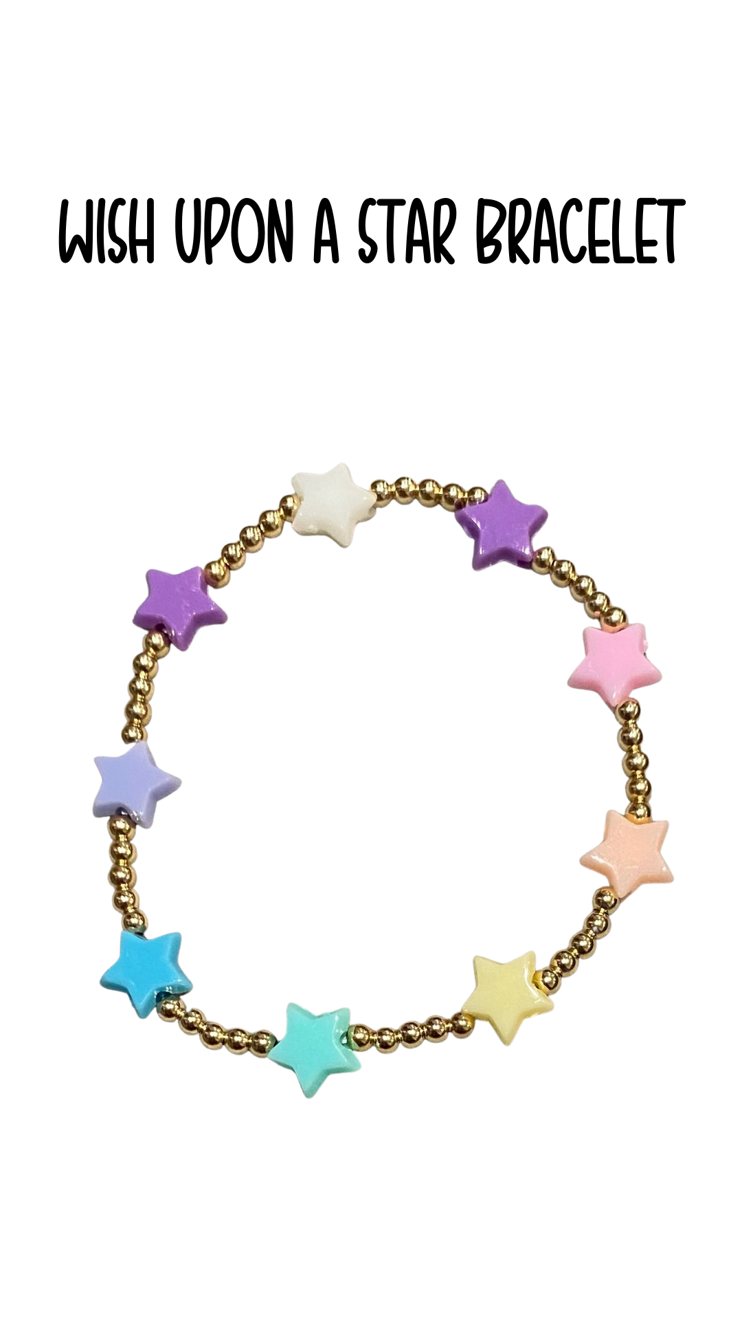 This listing is for one pastel rainbow gold filled stretch bracelet. Made with a rainbow pattern of acrylic star beads and 14K gold filled beads